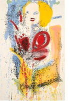 Энди Уорхол / Andy Warhol «Одна многоцветная Мэрилин» (серия Негатив) (One Multicolored Marilyn (Reversal Series)), 1979/1986гг. Оценочная стоимость £600 000 – 800 000. Знаковая для поп-культуры ХХ века работа Энди Уорхола «Одна многоцветная Мэрилин» (серия Негатив) – это исследование современной иконографии, а также дань коммерциализированному и тщеславному обществу, которое художник показывает через призму своего творчества. Эта картина появилась почти через двадцать лет после первого портрета американской женщины-вамп, созданного Уорхолом; он вновь демонстрирует красоту Мэрилин, но в более сдержанной цветовой гамме. Этот прием отражает и конец красочной эры диско, и различие между поздними работами Уорхола и ранними изображениями актрисы. «Одна многоцветная Мэрилин» полностью олицетворяет философию Уорхола: видоизменяя визуальные ориентиры, определявшие жанр поп-арта, Уорхол по-новому интерпретировал и себя, и свои работы, вновь продемонстрировав творческую смелость, благодаря которой и снискал всемирное признание.