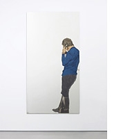 Микеланджело Пистолетто / Michelangelo Pistoletto «Мужчина в сапогах, разговаривающий по телефону» (Uomo con gli stivali al telefono), 1970г. Оценочная стоимость £350 000 – 450 000. Со времен выставки Sonnabend в Париже в 1964 году Микеланджело Пистолетто известен во всем мире своими «зеркальными полотнами». Зеркало стало для Пистолетто самым подходящим материалом, чтобы выразить свое творчество и исследовать с его помощью идеи времени, перспективы и создания образа. Визуально работа весьма прямолинейна: на плоскую зеркальную поверхность нанесен цветной трафаретный отпечаток. «Мужчина в сапогах, разговаривающий по телефону» изображает художника в реальную величину, одетого в одежду 1970-х годов и подстриженного по той же моде, который стоит к зрителю спиной. Зритель становится частью полотна из-за отражательной способности последнего; однако художник, поглощенный своим вымышленным разговором, кажется, не замечает этого вторжения.