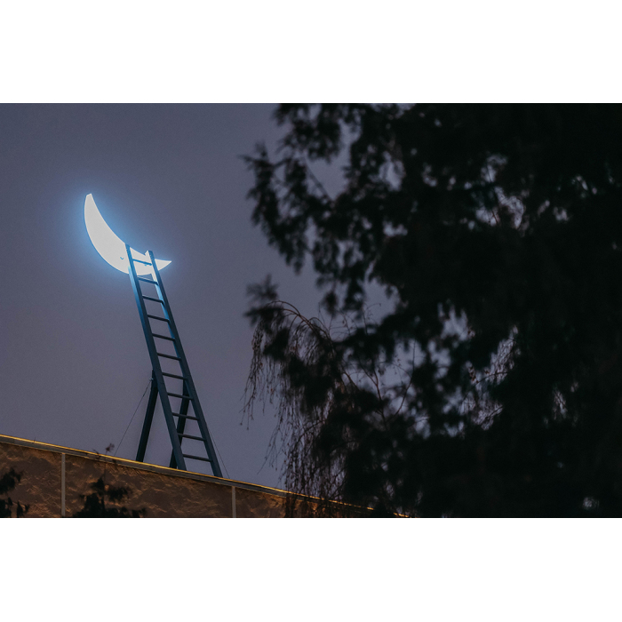 На фестивале «Здесь и сейчас» появилась «Лестница на Луну» – посвящение всем мечтателям и романтикам. При взгляде на инсталляцию, установленную на крыше КЦ «Москворечье», кажется, что до неба рукой подать. Пусть это лишь фантазия, кто знает, возможно, она станет реальностью в ближайшем будущем. «Лестница на Луну» напоминает и о том, как важно не быть скованным одной жизненной парадигмой, ведь человек всегда желает чего-то большего.