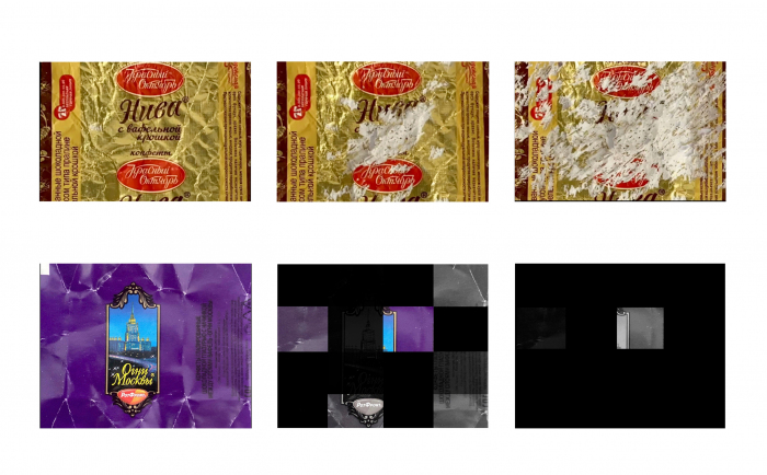 Актуальность художественного метода Полины Ночка достигает своего пика в работе с найденными объектами. В серии «Memory Fading» художница использует, казалось бы, ничтожную деталь — обычные фантики от конфет, привезенные с Родины. Но их названия сегодня резонируют с пугающей многозначностью.