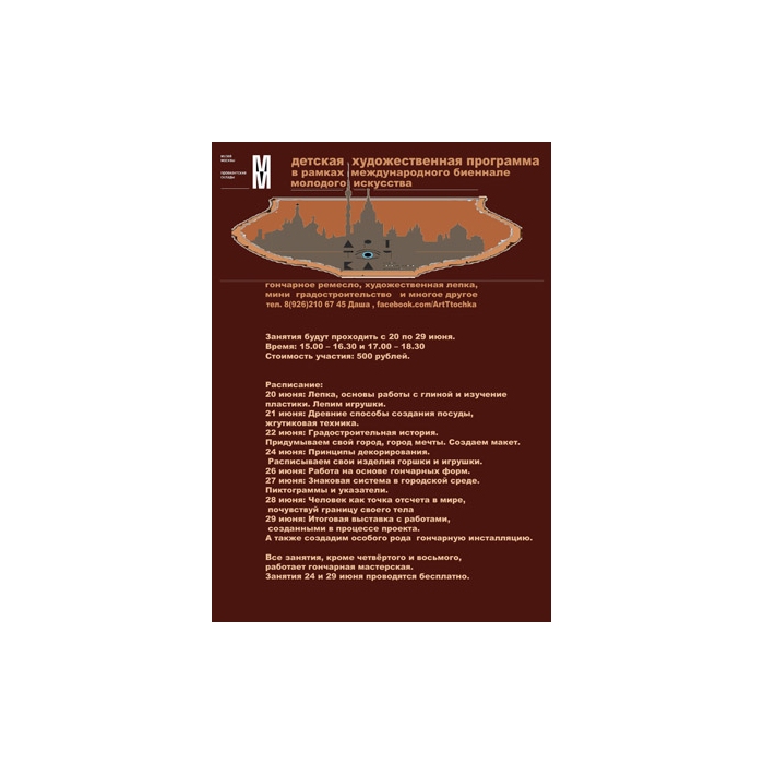 29 июня: Итоговая выставка с работами, созданными в процессе проекта. А также создадим особого рода гончарную инсталляцию.