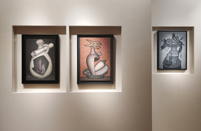 Искренне рекомендуем посетить выставку, перенесясь сначала в атмосферу исторического здания Малороссийского подворья конца XVII века, а потом погрузиться в медитативное созерцание «метафизических натюрмортов», застывших в где-то безвременье.