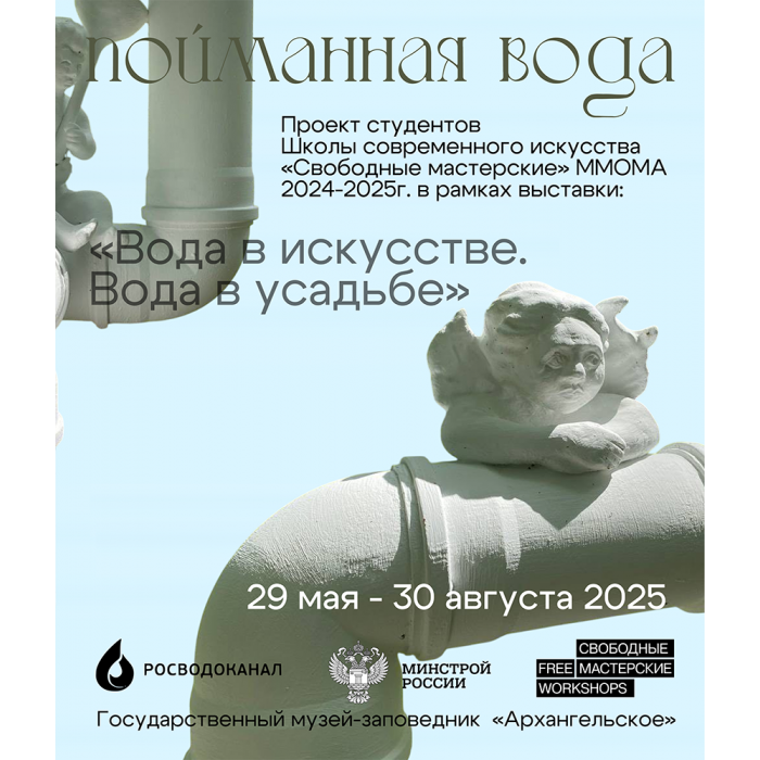 Студенты Школы современного искусства «Свободные мастерские» ММОМА представляют на выставке «Вода в искусстве. Вода в усадьбе» в Музее-заповеднике «Архангельское» лэнд-арт проект «Пойманная вода».