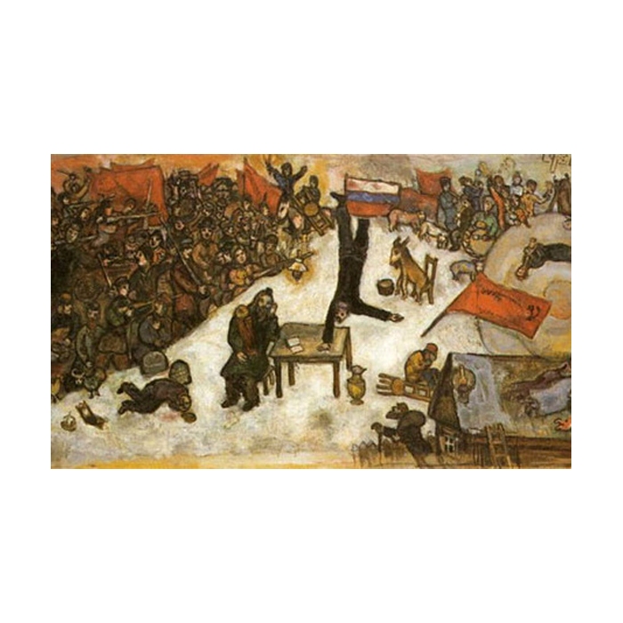 Начавшаяся в 1914 году война заставила художника вернуться в Россию, где в 1917 году его застала революция. Революция перевернула с ног на голову социально-политическую и культурную реальность целого государства. Марк Шагал, назначенный в 1918 году комиссаром искусств в родном Витебске, также присоединился к революционному движению. Устроенное Шагалом торжественное шествие в честь первой годовщины революции в Витебске больше напоминало средневековый карнавал или цирковое представление, чем советский праздник.