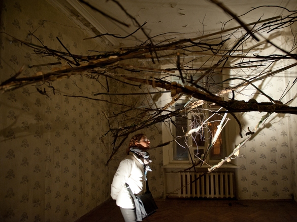 Инсталляция, проволока и сухие ветки.