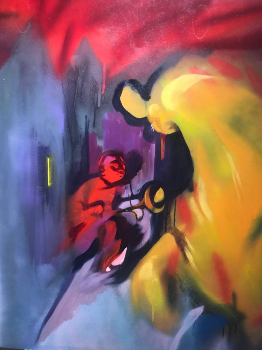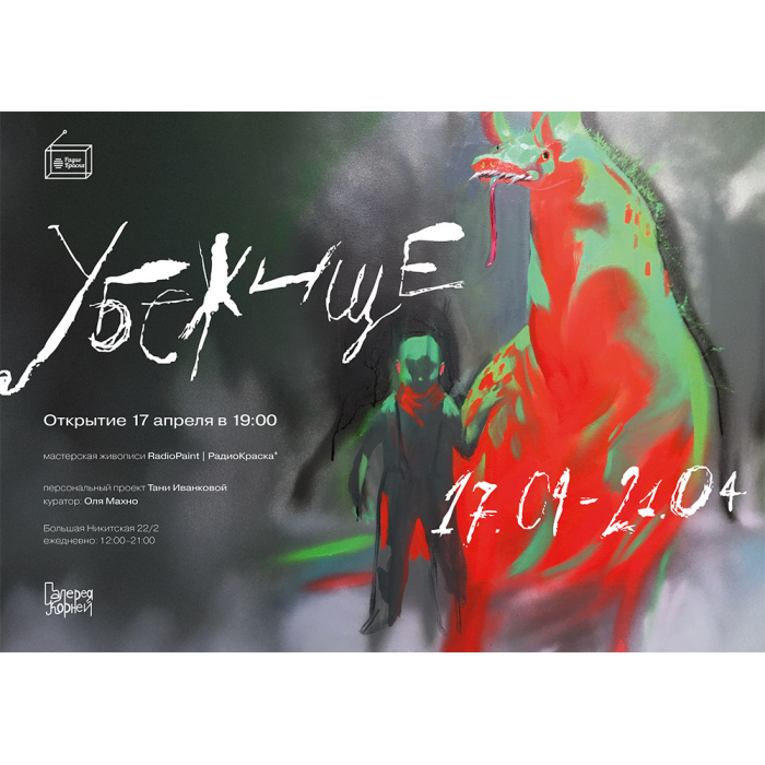 Этот принцип лежит в основе моей персональной выставки «Убежище» в галерее «Корней». Я открываю дверь в свое секретное пространство — туда, где навсегда 13-летние ковбои разъезжают по прериям на неоновых гиенах и жирафах, пожевывая травинку. Это мой личный эскапизм, мои, если угодно, фетиши: кислотные цвета, монстры, особая, уникальная предпубертатная свобода. Когда я их пишу, то полностью растворяюсь в этом пространстве, живопись — это способ быть там и способ поделиться своим Убежищем с другими.