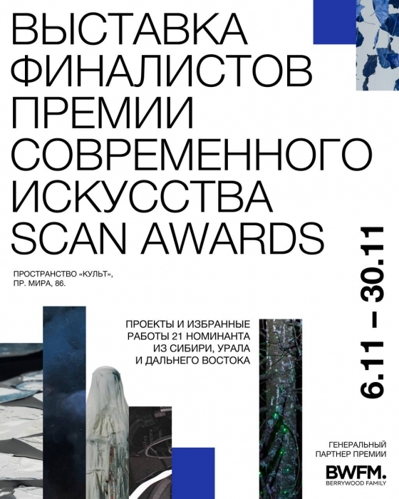 До 30 ноября в красноярском пространстве «Культ» продолжается выставка номинантов премии в области современного искусства SCAN AWARDS. Экспозиция представляет работы и документацию проектов семи ключевых номинаций премии.