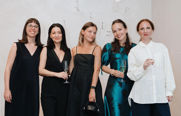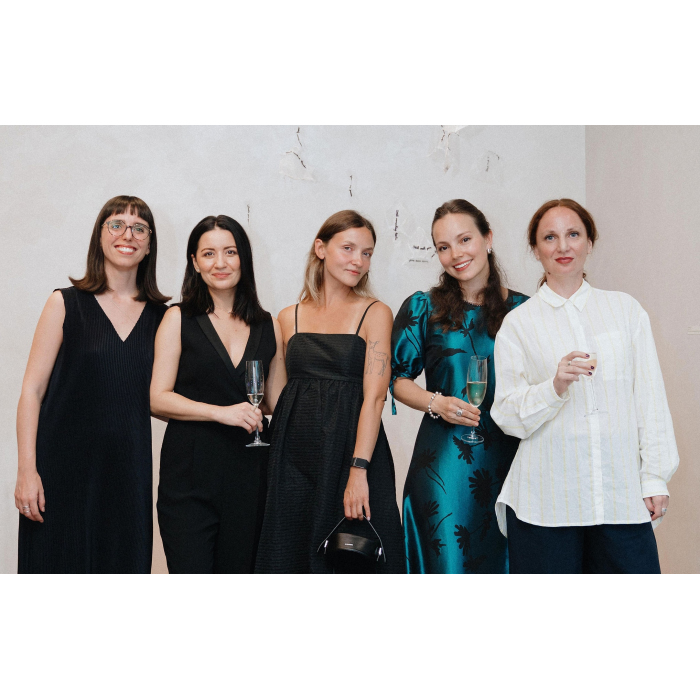 Слева на право: Селия Лейва Отто (со-куратор), Дина Мостовая, художница Алена Ракова (Exantres), Алиса Лисовская (куратор) и художница Яна Медоу
