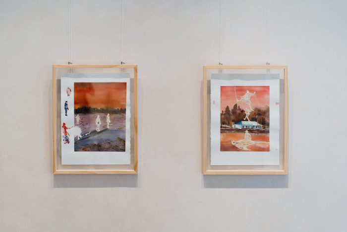 Серия акварелей Анны Антоновой исследует границу между фигурой и окружающей средой. Художница вырезает фигуры из цвета, позволяя пустому пространству стать активным элементом композиции. Силуэты подобно фантомам существуют в хрупком равновесии с пейзажами вокруг них.