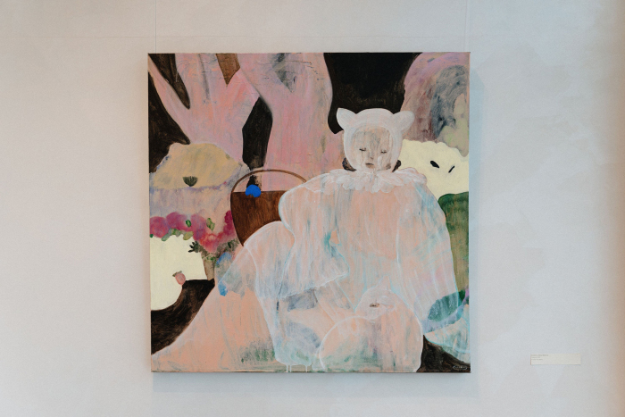 Алена Ракова (Exantres) в своей художественной практике много внимания уделяет темам женственности и девичества. Представленная на выставке «On the other way» работа — не исключение. Нежный и полупрозрачный колорит, текучие цветовые пятна напоминают состояние дремоты и вызывают щемящее чувство ностальгии. Комментируя эту работу, Алена говорит, что в любой взрослой женщине где-то живет маленькая девочка, а в любом серьезном мужчине – искренний и добрый мальчик. Такой выразительный образ хрупкой невинности призывает смотреть на мир другими глазами, чтобы время от времени возвращаться к ним.