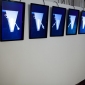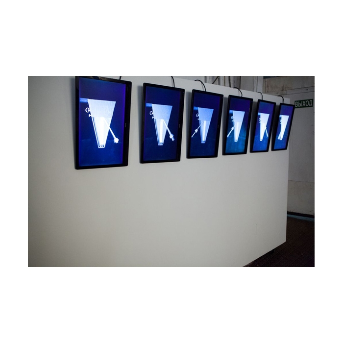 Наталья Зинцова перевела в графическое и видео-изображения «Музыку для кусочков дерева» Стивена Райха. Рядом отбивают ритм метрономы шестиканального видео Сергея Шутова, имитируя стук колёс («Сапсан-Ласточка»). Художник обращается к любимому футуристами и сюрреалистами образу метронома. Ритм времени рифмуется со стуком колес. Графический цикл La Scala Юрия Аввакумова посвящен архитектурным утопиям русского авангарда.
