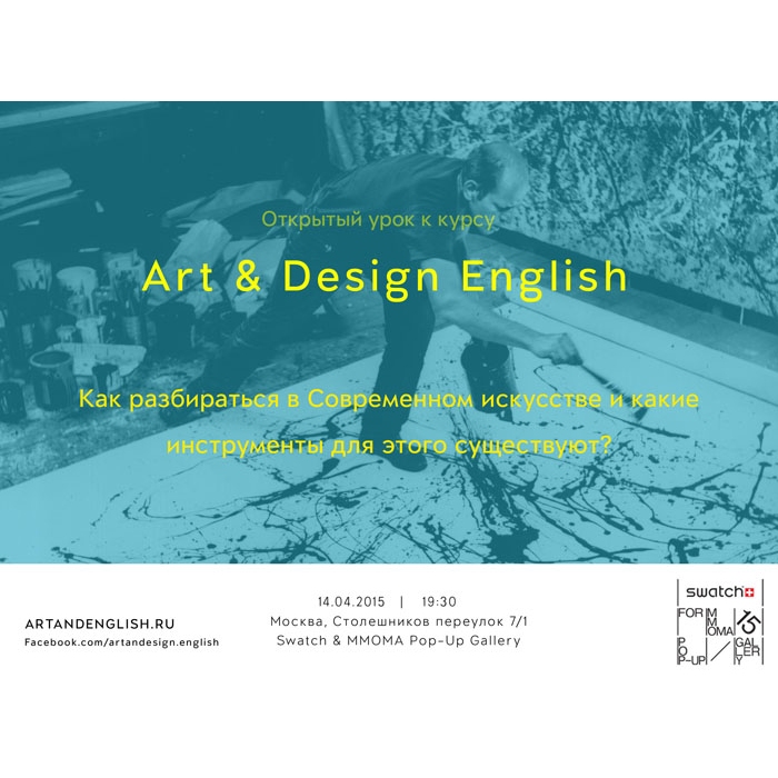 Открытое занятие к курсу Art and Design English пройдет в SWATCH & MMOMA POP-UP GALLERY. Как начать разбираться в современном искусстве и иметь свое мнение? Уметь его, если не доказать, то объяснить? Существуют ли специальные инструменты для того, что понять современное Искусство и если да, то какие? Эти и многие другие вопросы будут обсуждаться на английском языке 14 апреля в 19:30 в SWATCH & MMOMA POP-UP GALLERY