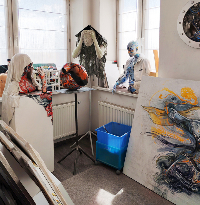 Можно прочитать различные интервью (список публикаций на АртУзле смотрите в конце материала), посмотреть видео на канале Марины, побывать на открытии выставок и паблик-арт объектов, а можно посетить мастерскую. И это очень разные форматы общения с художником.