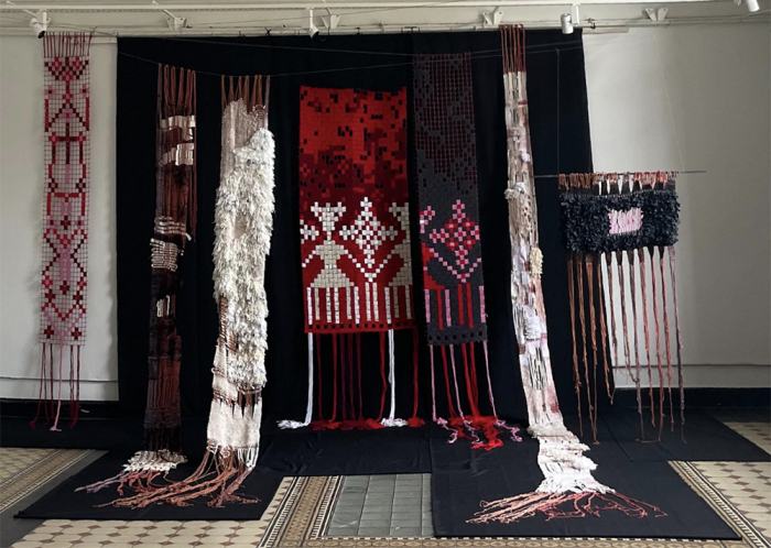 Одним из ключевых пространств стала Голубая гостиная. Это зал, который разделен на три тематических блока, объединенных темами родовой принадлежности и межпоколенческой связи. В этом части экспозиции я провожу параллели с природными структурами — ульями, жизнью насекомых, деревьями. Также я обращаюсь к личному, в том числе к воспоминаниям о бабушкином доме.