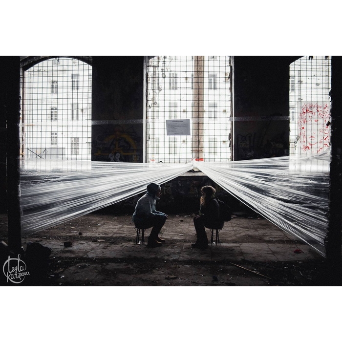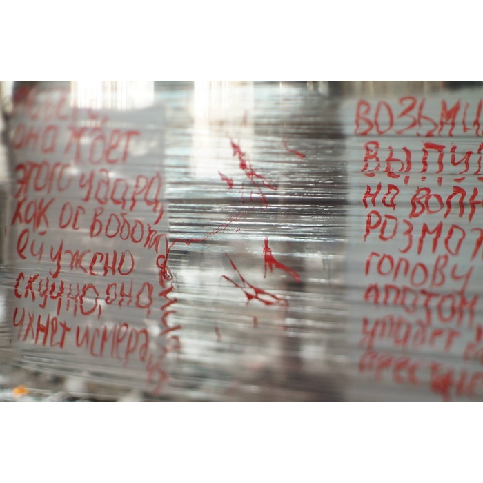 Чем же интересна выставка, которая прошла в Депо на этих выходных? Начнем с того, что это группа студентов – молодые художники, которые пришли в школу современного искусства, чтобы освоить азы взаимодействия с институцией. В рамках курса "Стратегии самопродвижения для начинающих художников", который преподает художник и куратор Марина Руденко, студенты устроили свой собственный ФАРШ, а точнее ШАРФ. То есть практика проведения несанкционированных выставок уже преподается официально и теперь в институциях молодых художников учат работать подпольно?! Это любопытно и даже отчасти рискованно. Ввиду последних событий, власть напряжена и внимательно следит за всеми мероприятиями, тем более несанкционированными. Приглашения на ШАРФ распространялись строго через личные контакты, и, в отличие от ФАРШа, не было никаких публикаций о мероприятии в социальных сетях.