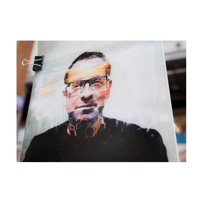 «Основываясь на своем 30-летнем опыте работы, я намерен представить эволюцию моей деятельности от видеоарта до объектов виртуальной реальности, несущих в себе концепцию «критического синтеза». Границы стерты, вымысел больше не попадает в капкан рамок экрана, сцены, романа. Он – часть реальности. Когда реклама и мейнстрим работают на глобальную зрелищность, о которой описал Ги Дебор в своей книге «Общество спектакля», художники заняты новой эстетикой, именуемой «критическим синтезом».