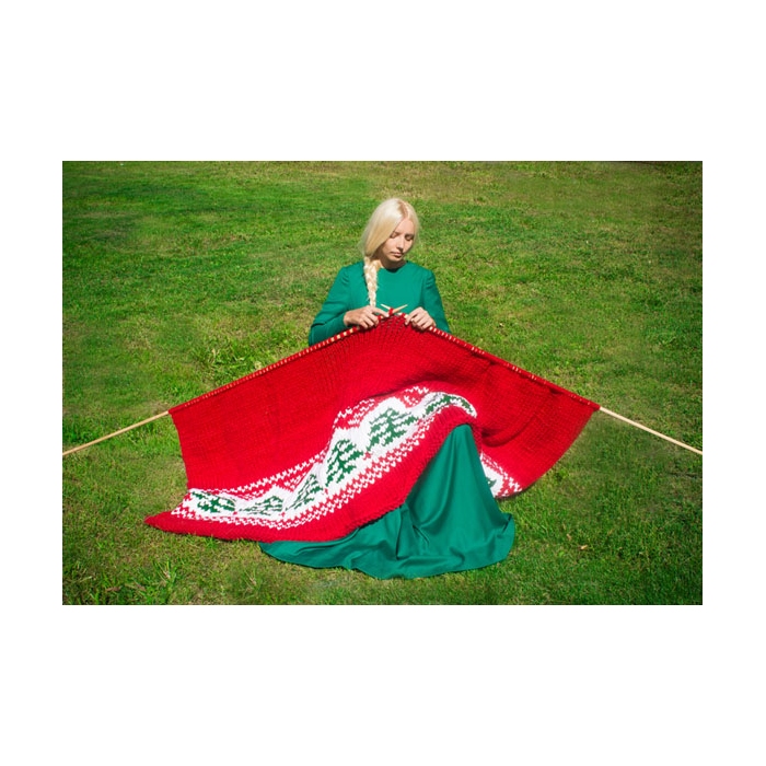 «Мой Кремль» это разговор о серьезном через несерьезное. Вязаное полотно с «дурацким» орнаментом одновременно и теплый зимний свитер и ковер – неизменный символ советского достатка и комфортного быта. Оно напоминает о бескрайних сибирских лесах и полях и о столь же бескрайней и вечной сибирской мерзлоте. В процессе создания полотна, который зритель может наблюдать на видео, художница создает вокруг себя это пространство – вяжет Россию, или ткет свое а, возможно, и наше общее будущее.