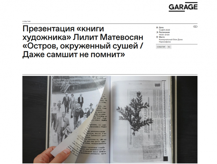 Презентация «книги художника» Лилит Матевосян «Остров, окруженный сушей / Даже самшит не помнит»