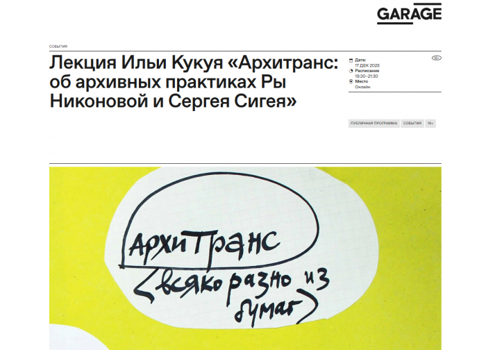 Лекция Ильи Кукуя «Архитранс: об архивных практиках Ры Никоновой и Сергея Сигея»