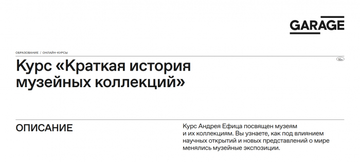 Курс посвящен музеям и их коллекциям. Вы узнаете, как под влиянием научных открытий и новых представлений о мире менялись музейные экспозиции.