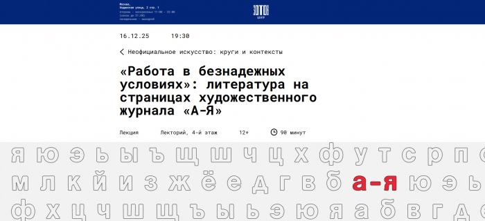 Лекция «Работа в безнадежных условиях»: литература на страницах художественного журнала «А-Я»