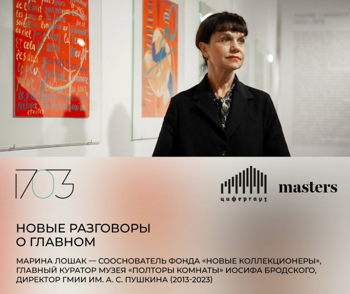 Марина Лошак — сооснователь фонда «Новые коллекционеры», главный куратор музея «Полторы комнаты» Иосифа Бродского, директор ГМИИ им. А. С. Пушкина (2013–2023) проанализирует изменения, вызванные морально-этическими проблемами нашего времени, и постарается ответить на вопрос «Что волнует сегодня тех, кто связан с полем искусства?». На примерах из музейной и выставочной практики Марина Девовна покажет, как окружающие нас вызовы формируют актуальную художественную повестку.