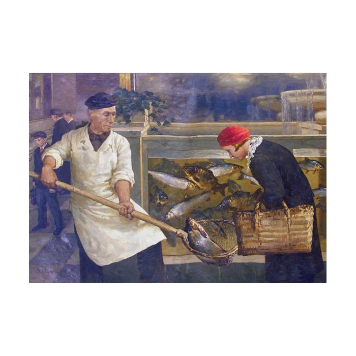 1920–1930-е годы явились сложным, противоречивым временем становления советской экономики. Натюрморты 1920-х гг., как правило, не поражают изобилием, что и не удивительно, ведь скудость продовольствия сделалась неотъемлемой частью повседневного существования. Тогда же складывается культура советского общественного питания, появляется реклама пищевой индустрии. В этот период к созданию рекламы, дизайна упаковки и слоганов для пищевой промышленности привлекаются известные художники, такие как А. Родченко, В. Маяковский, А. Зеленский, К. Юон, А. Мандрусов и др. Тема еды в СССР отличалась выраженным парадоксом: изобилие, демонстрировавшееся в фильмах и книгах «о вкусной и здоровой пище», оборачивалось полупустыми прилавками в реальной жизни. Как бы то ни было, мотивы обильного, вкусного застолья прочно закрепились в советской эстетике. Изображения колосьев, овощей и фруктов украшали фасады зданий, станции метрополитена, фонтаны, гербы союзных республик и даже тканые льняные скатерти в ресторане гостиницы «Москва». Работы 1930–1950-х гг. – это во многом «продовольственная утопия», особое художественное пространство изобилия и счастья. В экспозиции представлены типичные для той эпохи работы О. Яновской («Мастерская тортов») и Ю. Клевера-младшего («В рыбном магазине»), причем обе они были показаны на первой после революции выставке советского натюрморта 1 августа 1939 г. Еда стала излюбленной темой советской инфографики, нашедшей воплощение в плакатах, брошюрах и, разумеется, иллюстрациях кулинарных книг.