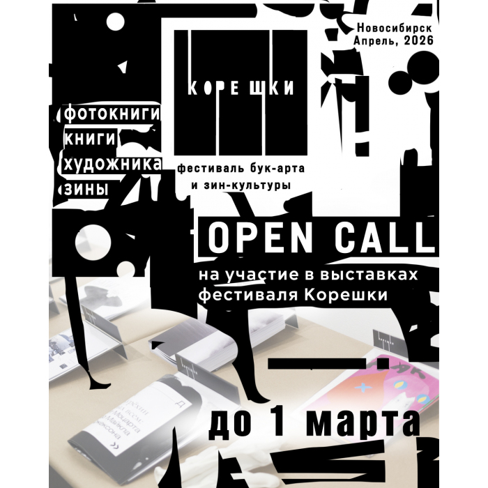 Фестиваль бук-арта и зин-культуры «Корешки» пройдёт в Новосибирске 15-30 апреля 2026 г. на площадках ГПНТБ (СО РАН) и Fab.8., галереи и мастерской печатной графики.