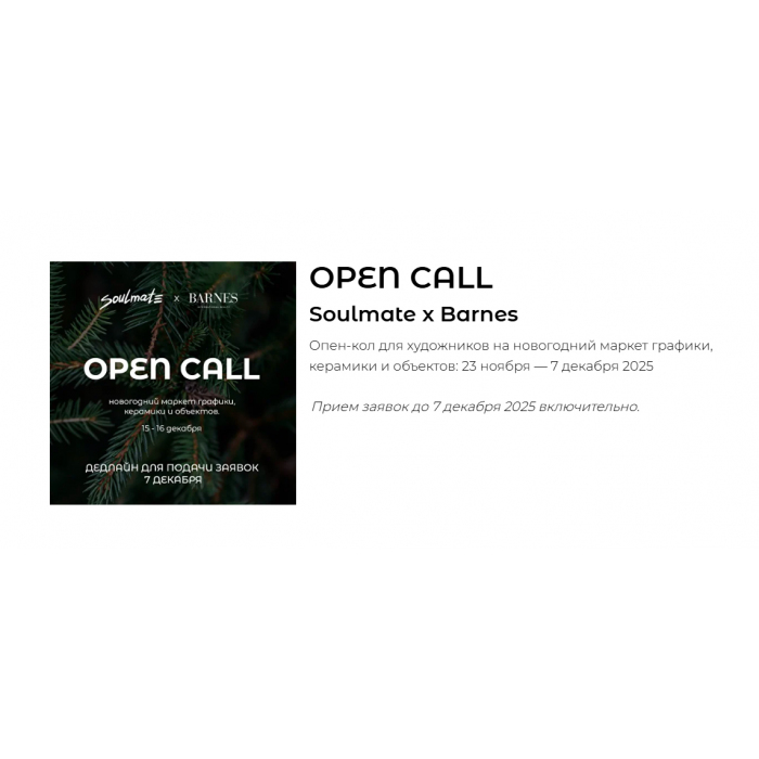 Open call галереи Soulmate х Barnes на участие в маркете до 7 декабря
