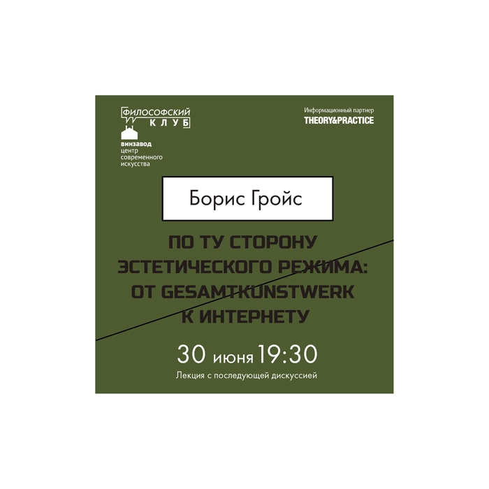 30 ИЮНЯ В 19:30 В ЦЕХЕ БЕЛОГО ЦСИ ВИНЗАВОД СОСТОИТСЯ ЛЕКЦИЯ ВЫДАЮЩЕГОСЯ РОССИЙСКОГО ФИЛОСОФА БОРИСА ГРОЙСА, КОТОРЫЙ РАССКАЖЕТ О СТАНОВЛЕНИИ ПРОЕКТА GESAMTKUNSTWERK ИЛИ ЕДИНОГО ПРОИЗВЕДЕНИЯ ИСКУССТВА. ВХОД СВОБОДНЫЙ.