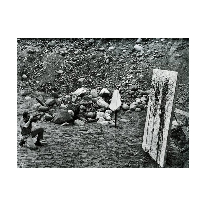 На фото: Роберт Раушенберг во время акции Tir (Стрельба)
