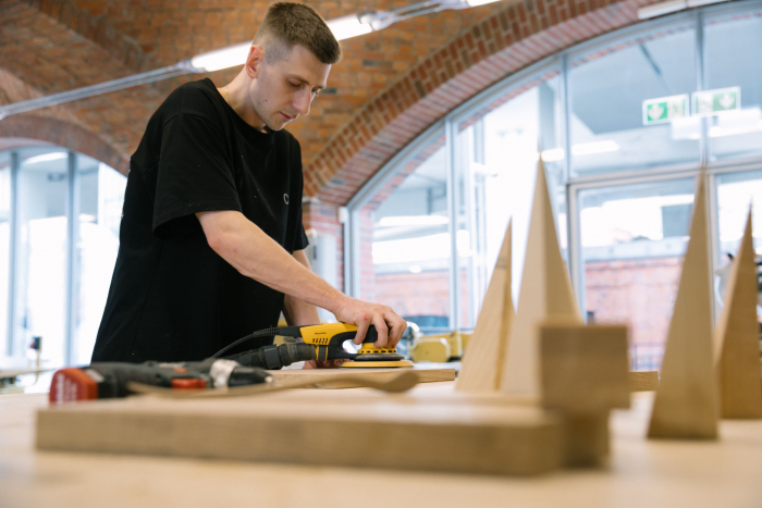 У нас можно работать с деревом, металлом, пластиком; есть текстильная мастерская, в которой можно шить и ткать. Действуют керамическая мастерская и фотолаборатория, а также аудио- и видеостудия. Мы старались собрать очень разное оборудование — от самого простого ручного инструмента до сложнейших станков с ЧПУ (числовым программным управлением).