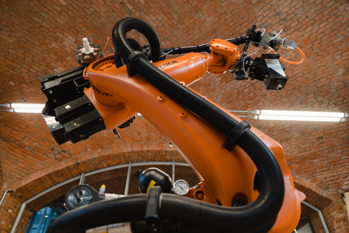 Роботизированная рука KUKA с возможностью фрезеровки и 3D-печати. Москва, 2021. Фото: Глеб Леонов, © Дом культуры «ГЭС-2»