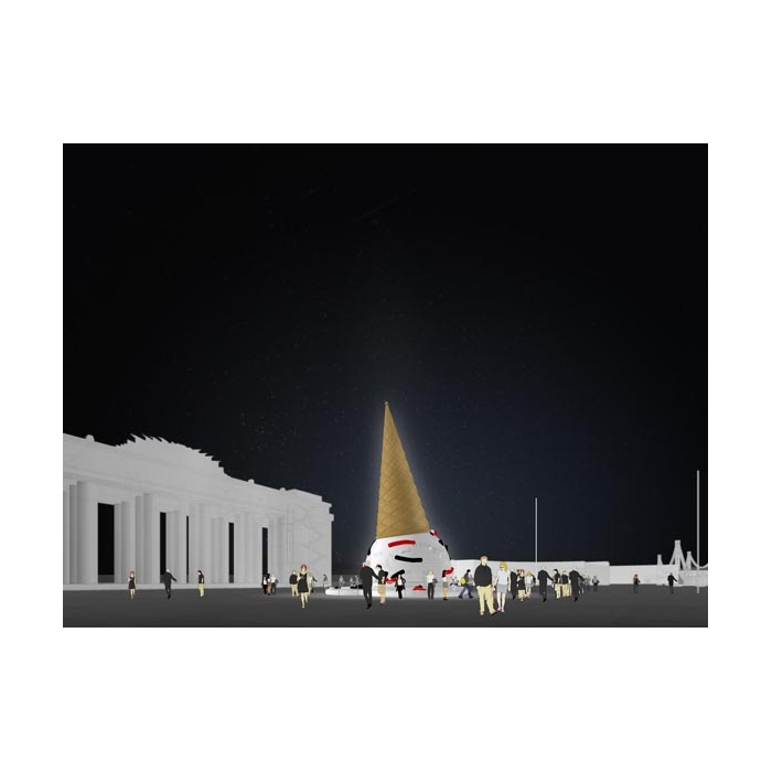 Благодаря реализации этой «зимней» инициативы Москва встанет в один ряд с такими городами, как Нью-Йорк, Париж, Лондон, Мадрид, Токио и другими. Оригинальность идеи заключается в том, что архитекторы создают объект специально для Парка Горького, он не является адаптацией существующего проекта или повторением работ, реализованных в других странах. Объект высотой около 15 метров представляет собой перевернутый рожок мороженого и по форме напоминает елку. Именно она станет одним из символов Нового года 2015 для всех посетителей Парка и будет встречать их перед Главным входом. Выбор объекта неслучаен, основная тема Катка Парка Горького в этом году – поп-арт. Яркие и ироничные образы, вдохновленные творчеством Роя Лихтенштейна, раскрасили зимнее пространство Катка. Елка трактует известные образы поп-арта в постмодернистском ключе, создавая новое смысловое поле перед Главным входом.