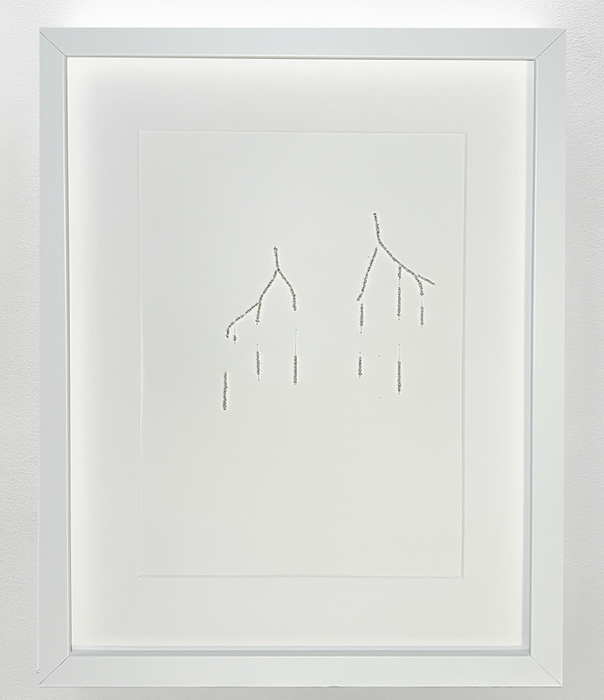 Гости также увидят работы художницы, получившей образование в Цюрихском университете искусств и архитектурной школе МАРШ, участницы выставочных проектов в Музее Москвы, Никола-Ленивце, Музее современного искусства «Гараж», галерее ГРАУНД Солянка Аси Заславской. Она создает серию динамических работ из бумаги и бисера, в которых графика буквально оживает благодаря рельефу бусин и приглашает зрителя к контакту с ней – прикосновение к нитям приводит в движение всю картину, подчеркивая ее пластичность.