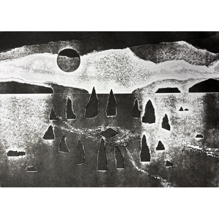 Основой его работ является вымышленная письменность и выдуманная автором культура, а визуальным референсом — типографская верстка. В отпечатках последних лет заметны следы коллажности, в его работах часто виден горизонт: накладывая обрезки бумаги на лист, художник фиксирует россыпи сопок, архипелаги и анимистические фигуры. Новые изображённые сюжеты не несут признаков времени или места, а скорее являются универсальным отпечатком некой «иной» реальности, что автор называет «событием», — знак, который можно обнаружить почти в каждой работе. Автор, как правило, свидетельствует о себе, достраивая нарратив постфактум из первичных случайных образов, рождённых на листе.