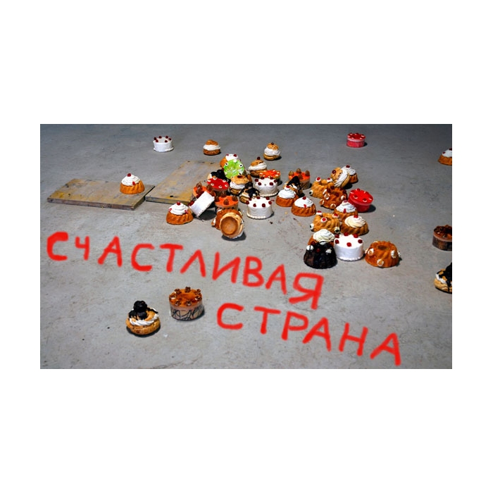 Выставка швейцарских художников из Женевы Дельфины Рест (Delphine Reist) и Лорана Фолона (Laurent Faulon). Проект заимствует своё название из высказывания, приписываемого Сталину. Его подлинность трудно подтвердить, но его постоянно цитируют во Франции: «Счастливая страна не нуждается в юморе». Большая часть представленных работ задумана и сделана в течение августа, во время московской резиденции в мастерской сообщества ВГЛАЗ, по приглашению художника Гоши Острецова. Оба художника работают часто во время своих путешествий, создавая произведения, проникнутые контекстами, которые они обнаруживают на местах. Если Сталин выступал перед своим народом с угрозой построения счастья «в одной, отдельно взятой стране», то счастье, о котором идёт речь на выставке, это счастье глобализованного рынка, который от Женевы до Москвы, от Рио до Шанхая, от Далласа до Сиднея… ведёт к процветанию одних и тех же шопинг-молов, генераторов безупречного счастья, везде одинакового. Наконец достигнутое единство!