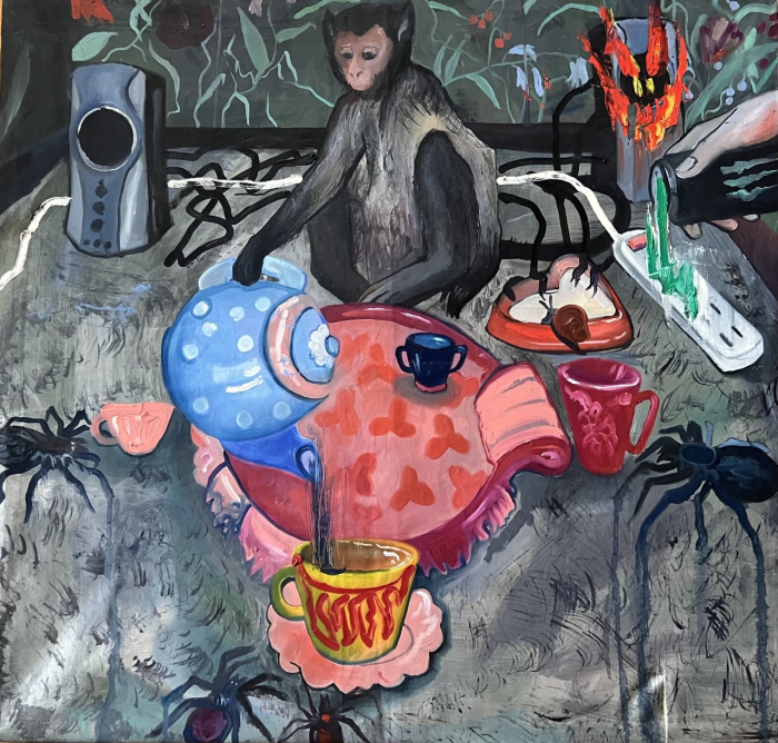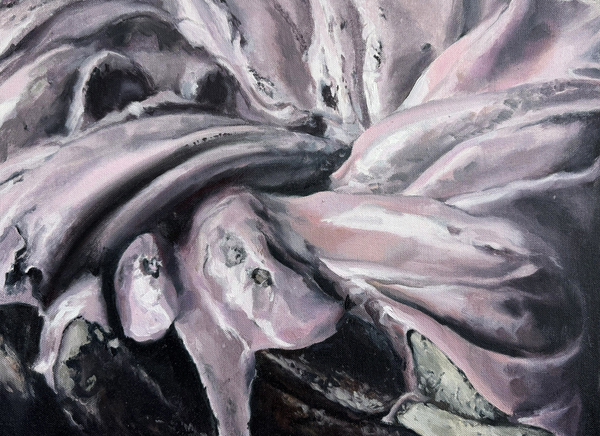 «Не говори, а то не сбудется» — фраза, вселяющая трепетную надежду и множащая страх. Возможность заглянуть внутрь себя и сформулировать лишь одно заветное желание. Попытка получить всё, не делая ничего. В технике живописи художница воссоздает фотосюжеты из личного архива, на которых запечатлены неидеальные в своём товарном виде десерты и их остатки — разрезанные, надломленные. Пышные текстуры крема, таяние шоколада и обнажённый слой джема изображены в процессе превращения в свидетельство своей собственной материальной конечности.
