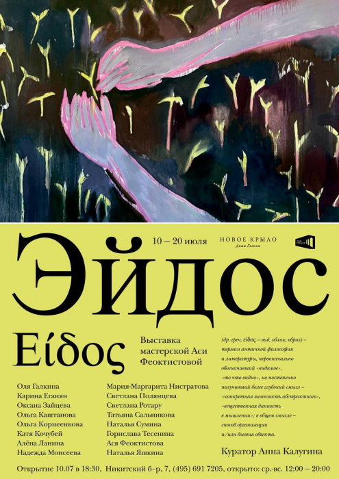 Сегодня, когда границы между традиционным и цифровым искусством становятся все более размытыми, выставка предлагает зрителям задуматься о будущем художественного выражения. Проект включает две сменяющиеся цифровые экспозиции: первая часть обращается к метафизическим формам, подвижным состояниям, трансформации смысла; вторая — к визуальным образам, узнаваемым жанрам и бытовым сюжетам. Также представлены физические работы художников — созданные до обращения к нейроарту. Это даст возможность проследить путь трансформации их художественного высказывания. Художники: Валерия Титова, Ksunny Wazowski, Миша Надымов, Яр Кирсанов, Рита Ватаман, Андрей Максимов, Слава ЅАF, Евгения Шабунина (ejaneress), Антон Копоть (Akopto), Илья Шапко, Алексей Клименко (qlimm), Настя Бабицкая (bibi), Антон Петров (StLaurentJr), Анна Швец. Куратор: Марианна Малярова.