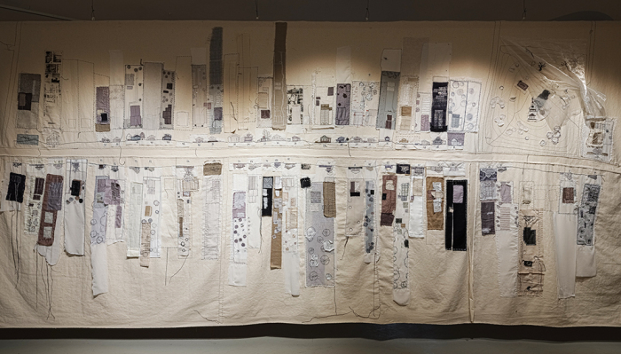 История «Полотна» началась с путешествия в Ивановскую область, город Палех, где в советское время на основе уникальной иконописной техники местные мастера создали традицию лаковой миниатюры. Улицы, составленные из деревянных домов, природа, церковь с сиреневыми куполами и атмосфера творческого добрососедства вдохновили укорениться в этом городе и изучить его глубже. Так у основательницы NOWADAYS office Натальи Масталерж в Палехе появилась изба, а у бюро — тема для ежегодной летней школы. Результатом стал коллективный объект из ткани с вышивкой, повторяющий атмосферу улиц и домов Палеха.