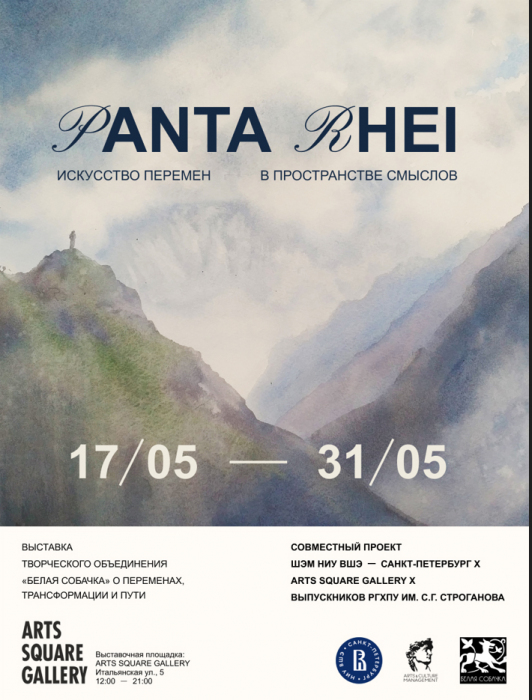 Dыставка живописи, скульптуры, стекла и керамики, организованная совместно с МП «Менеджмент в индустрии впечатлений» НИУ ВШЭ СПб и выпускниками РГХПУ им. С.Г. Строганова. Выставка посвящена творческому осмыслению движения в нашей жизни. Название проекта вдохновлено философией древнегреческого мыслителя Гераклита, самые известные тезисы которого переводят как «все течет, все меняется» и «нельзя дважды войти в одну и ту же реку». Обе фразы стали крылатыми выражениями относительно постоянных изменений реальности. Экспозиция создаст пространство для осмысления того, как человек проживает повседневность в движении, формирует ценности и воспринимает мир. Гости выставки смогут пройти собственный путь и отрефлексировать «движение», перемещаясь по выставочным залам галереи, которые приобретут концептуальные названия в рамках проекта: «Зарождение», «Развитие» и «Умиротворение».
