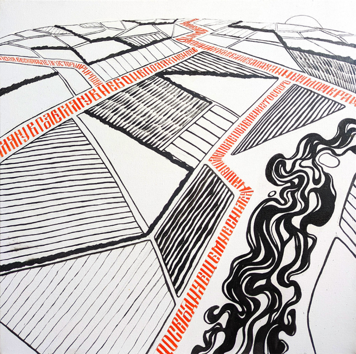 Работы из серии «Выход из текста» содержат тексты народных сказок или отрывки из них. Буквы в них – не просто символы, а главные участники визуального пространства, поражающие своей динамичностью: они словно стремятся вырваться за пределы плоскости, трансформируясь в удивительные художественные образы. В серии работ «Органика письменности: в унисон с бытием» каллиграфия вписана в традиционные сюжеты с родными глубинками, лесами и храмами. Здесь каждый штрих и изгиб подчеркивают, как письменность, вплетаясь в линии, напоминающие корни, воду, дыхание, проникает в нашу жизнь, становясь почти природным элементом. Эта выставка – дань уважения Дню славянской письменности и культуры, попытка заново почувствовать силу слова, его воздействие на наше восприятие окружающего мира. Работы Дарьи Зайцевой – смелый диалог, вызывающий глубокие размышления о роли слова; пример того, как текст способен вдохновлять и пробуждать воображение, открывая новые горизонты творчества.