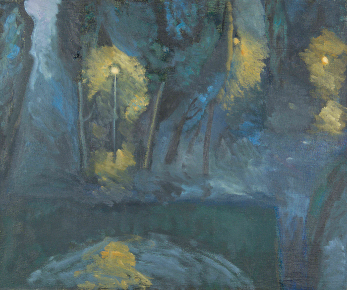 «Ночная серия» – это выставка цикла работ, созданных в период с 2009 по 2023 год и объединенных темой ночного пейзажа. Серия проходит через различные периоды творчества художника, но соответствует общей идее, которую можно описать следующими словами: ночь часто выразительнее, чем день, в ней есть загадка. Темнота даёт выгодный фон для фонарей и для того, что происходит в их свете. Игра теней меняет восприятие пространства и даёт простор воображению. Работая над «Ночной серией», автор стремился погрузить зрителя в атмосферу загадочного мира, зазеркалья, воображаемое место, в котором царит ночь, обычно безлюдное, населенное повторяющимися образами, подставленными под свет фонарей, горящих то ли как звёзды, то ли как чьи-то глаза.