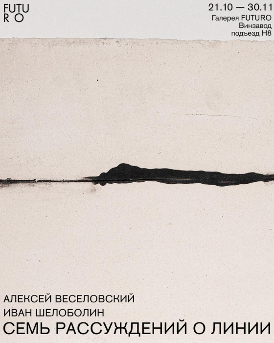 В пространстве выставки встречаются два автора, рассуждения которых касаются первоэлемента графики и музыки — линии. Линия заключает в себе потенциал к непрерывному созиданию, её движение формирует порядок из хаоса и разрушает старые структуры, организует как внешний, так и внутренний мир. В работах Алексея Веселовского линия выступает универсальным знаком, индексом вечного горизонта, первичной формой проявления человеческого сознания в акте творения. Семь проекций мысленных конструкций воплощаются в графических и объёмных керамических формах. Медиум графики утверждается как первооснова художественного мышления, где линия — источник всего визуального. В «Семи диалогах» Иван Шелоболин с помощью акустических и электронных инструментов очерчивает своë музыкально-линеарное пространство. Оно создано из звуков двух голосов, пересекающихся друг с другом, словно это петляющие тропы, проложенные двумя путниками. Поле музыки бесконечно и вневременно, но в то же мгновение обжито, и потому знакомо каждому. Линия как доязыковая форма вычленения смысла из хаоса становится для художников жестом, в котором соединяются пространство и время.