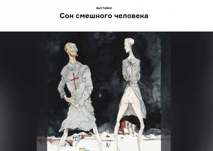 Художников и название/сюжет одноименного рассказа Ф.М. Достоевского разделяют разные времена и исторические контексты. Но при этом они объединены стремлением постичь роль личности человека в постоянно изменяющейся реальности, духовным поиском как сутью жизненного пути человека и глубиной постижения природы вещей. Каждый из художников движется к своей цели своим собственным маршрутом. И в этом тайна и смысл их пересечения в одной точке, на выставке «Сон смешного человека».
