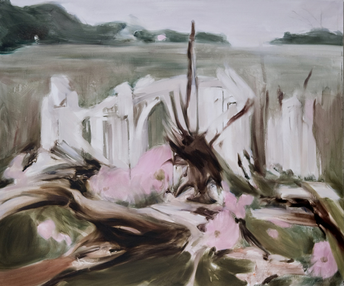 В рамках проекта художница обращается к телу в момент утраты его индивидуальной замкнутости. Она размышляет об этом как о переходе из субъектности в тотальность. Представленная инсталляция и сама отражает этот переход: центральное полотно было создано Алисой в мастерской, в ее личном, индивидуальном пространстве, но окончательный вид работа приобретет уже в пространстве социальном, в галерее, на глазах у зрителя. Мифологические сюжеты, к которым отсылает проект, подчёркивают непостоянство границ: здесь и Дафна, превращающаяся в дерево, чтобы спрятаться от Аполлона, и трагическая история жителей Помпей, которые оказались погребёнными, «слитыми», под одним лавовым потоком, утратив субъектность, чтобы стать частью тотальной истории. В новой инсталляции Алиса зацикливает переходное состояние: образы выходят за пределы холста на стены, чтобы снова вернуться в картину, дважды пробив живописные границы. В этом поле трансформаций разрыв границ возводится в абсолют, ибо в апогее тяготения тел процессы распада и слияния теряют различимость. Зрители же оказываются в своего рода темпоральном разрыве, благодаря чему в их перспективе мгновение трансформации предстаёт потоком сливающихся и отталкивающихся тел, стремящихся к бесконечной энтропии.
