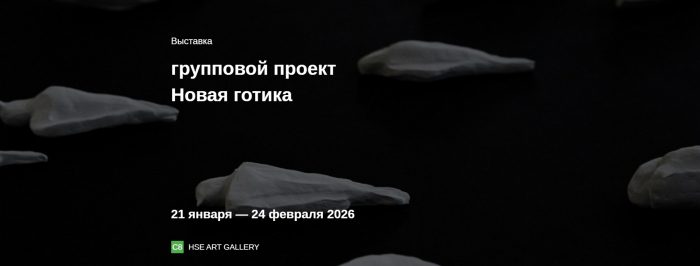 Выставка посвящёна осмыслению «тёмной» чувствительности в современном искусстве и визуальной культуре. В проекте «готика» осмысляется как критическая оптика, которая позволяет говорить о кризисе, тревоге и неопределённости современного опыта. В фокусе — российское современное искусство 2020-х годов и то, что в культурной критике всё чаще называют «тёмными двадцатыми»: временем разлома, усталости и утраты опор. Выставка объединяет работы 18 художников — студентов, выпускников и преподавателей Школы дизайна НИУ ВШЭ, а также приглашённых авторов, последовательно работающих с тёмной и готической чувствительностью. Куратор Илья Крончев-Иванов. Художники: Константин Аджер, Софья Алексеева, Карина Батраченко, Екатерина Болотова, Лина Борисова, Полина Вайнер, Катерина Веселовская, Елена Власова, Александра Гарт, Владислав Ефимов, Эрик Железкер, Александр Ларцев, Алиса Мюдеррисоглу, Юлия Немова, Алёна Пасхина, Вадим Ревин, Владимир Чернышёв, S_S.