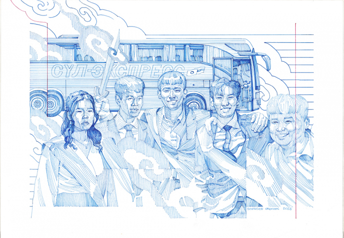 Выставка поднимает темы идентичности, культурной принадлежности, роли памяти поколений и личного опыта в жизни человека. Произведения, представленные на выставке, выполнены в период с 2024 по 2025 год, они разделены на три секции: графика, живопись и инсталляция. Одно из центральных мест в нарративе выставки занимает «Последний экспресс» (калм. «Сүл экспресс») — автобус, на котором выпускники покидают родной дом (возможно, безвозвратно) в поисках лучших перспектив в жизни. Вечно Синее Небо (калм. «Мөңк Көк Теңгр») меняет цвет в момент отправления «Последнего экспресса» — признак больших перемен в жизни его пассажиров. Этот образ вдохновлен рейсовыми автобусами, следующими по маршруту Элиста — Москва.