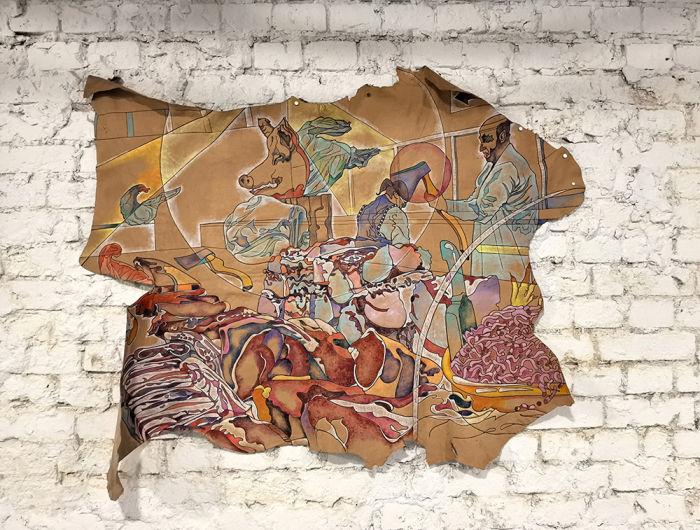 Картина на куске кожи, из серии, о мясной лавке. Ирина Моторина