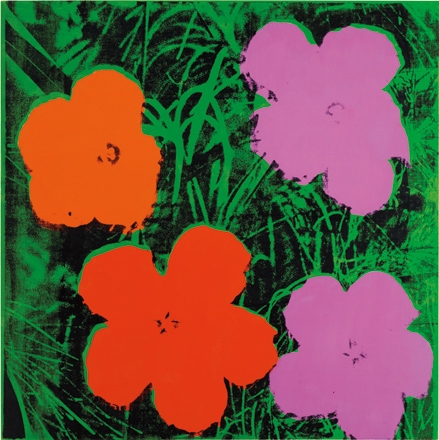 ЭНДИ УОРХОЛ / ANDY WARHOL, Цветы / Flowers, 1964 , оценочная стоимость $10,000,000 – 15,000,000. Цветы / Flowers, 1964, представляют собой удивительную по красоте интерпретацию одного из культовых сюжетов Уорхола. Работа несет в себе мощный заряд оптимизма, свойственного Америке 60-х годов и поп-арту как художественному движению. Цветы, выполненные в технике шелкографии в ярких фиолетовых, оранжевых и красных тонах, эффектно контрастируют с зеленым фоном. Представленный на аукционе лот является одной из важнейших работ из всей серии «Цветы» и привлечет внимание самых увлеченных коллекционеров.
